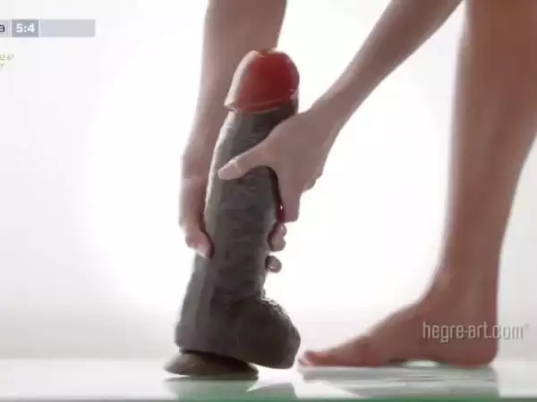 تحاول الفتاة مقاسات مختلفة من dildo's